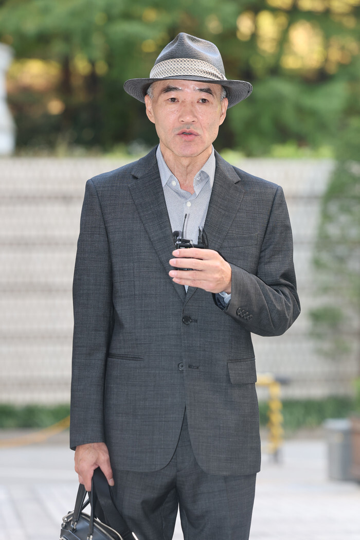 Lee Rae-jin, the elder brother of a South Korean fisheries official shot to death by North Korean soldiers while drifting in waters in the Yellow Sea in September 2020, speaks to reporters at the Seoul Central District Court in the capital on Nov. 5, 2025, as the court holds the final hearing of a trial on five officials of the former Moon Jae-in government over their involvement in the allegedly manipulated conclusion that the official was killed while attempting to defect to the North. (Yonhap)