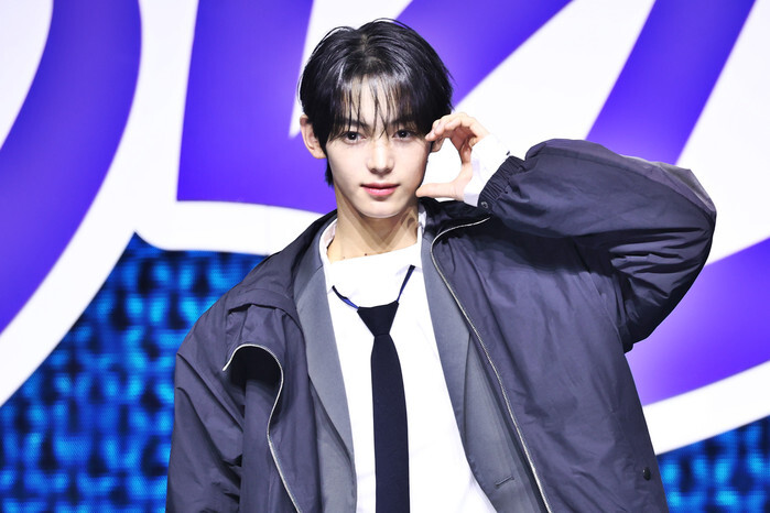 Hanjin, a member of South Korean boy group TWS, poses for a photo during a showcase in Seoul on Nov. 25, 2024, to promote the release of the group's first single album "Last Bell." (Yonhap)