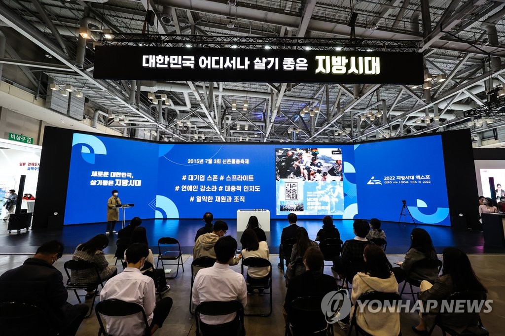 | ▲ 2022 대한민국 지방시대 엑스포 in 부산 (서울=연합뉴스) 10일 부산 벡스코에서 열린 '2022 대한민국 지방시대 엑스포 in 부산'을 찾은 관람객들이 지방시대정책관에서 발표를 듣고 있다. 2022.11.10 [2022 지방시대 엑스포 사무국 제공. 재판매 및 DB 금지] photo@yna.co.kr |