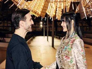 She shared her photo on social media with the brand's artistic director, Nicolas Ghesquiere, and a video posted by Louis Vuitton of the rapper attending the show garnered significant online buzz.