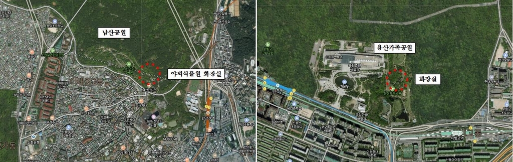 (서울=연합뉴스) 임미나 기자 = 서울시 중부공원녹지사업소는 반려동물을 동반한 이용객이 많은 남산공원 야외식물원과 용산가족공원 내 화장실 입구에 '반려동물 목줄 거치대'를 설치했다고 29일 밝혔다.
