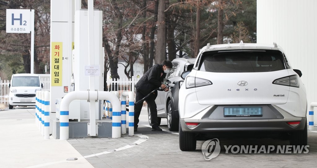 | ▲ 수소경제 활성화 위한 수소법, 오늘부터 시행 [연합뉴스 자료사진] 세계 최초로 제정된 '수소경제 육성 및 수소 안전관리에 관한 법률'(수소법)이 시행된 2월 5일 서울 국회 수소충전소에서 관계자가 수소차량 충전을 하고 있다. 2021.2.5 |