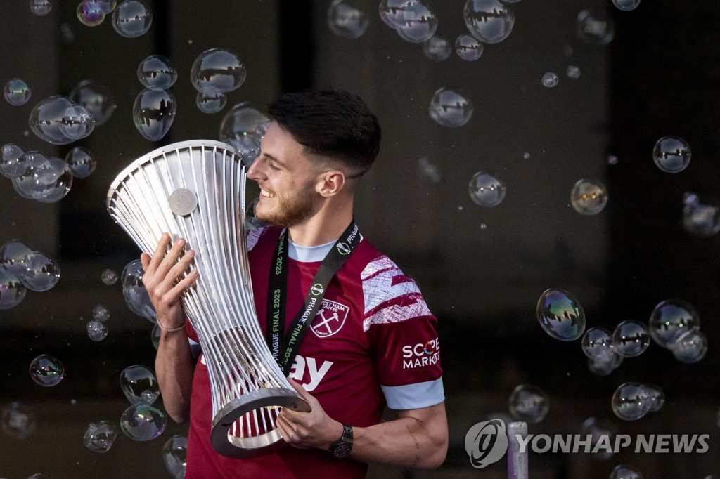 | ▲ 유럽축구연맹(UEFA) 유로파 콘퍼런스리그 트로피를 든 데클런 라이스 [EPA=연합뉴스] |