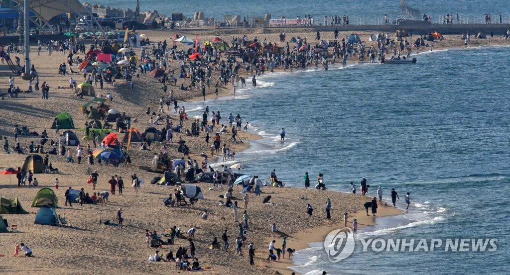 | ▲ This photo, taken May 5, 2022, shows people at a beach in the eastern coastal city of Sokcho to mark Children's Day. (Yonhap) |