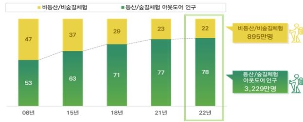 | ▲ 등산·숲길 체험 인구 변화 추이(만 19∼79세) [산림청 제공. 재판매 및 DB 금지] |