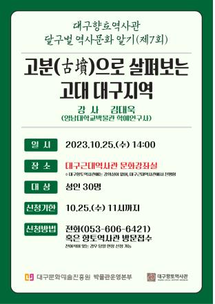 [게시판] 고분으로 살펴보는 대구 고대사…향토역사관 25일 강연회
