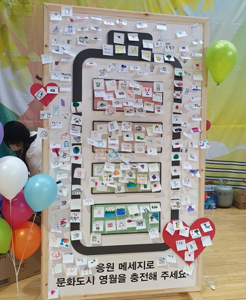 저학년은 '영월이 문화도시로 나아가는데 글이나 그림으로 응원 메시지' 작성, 고학년은 '영월이 문화도시가 되었을 때 하고 싶은 것은 무엇인지' 제안하도록 했다.