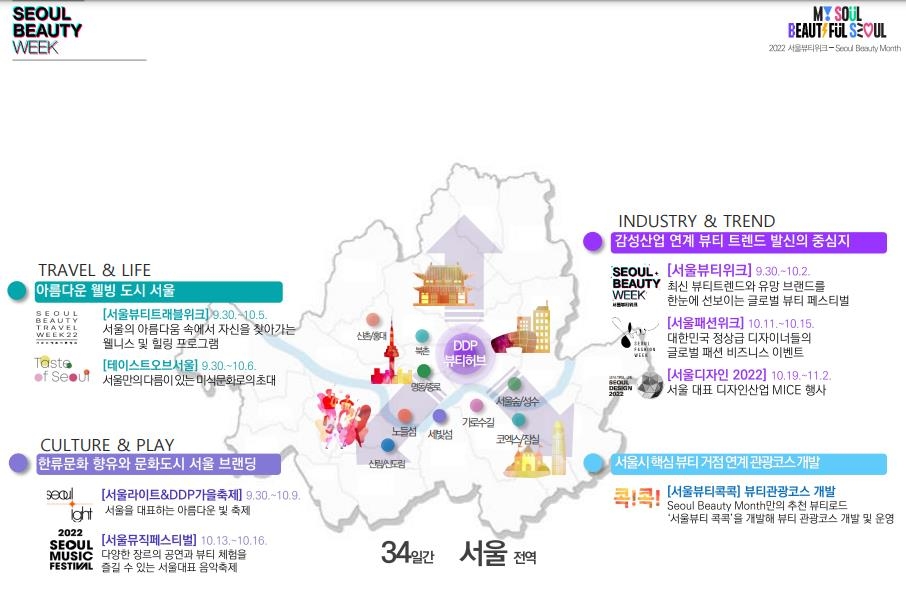 서울뷰티먼스는 크게 산업, 여행·관광, 문화 3개 분야 10개의 행사로 꾸려져 10월 한 달간 릴레이로 열린다.