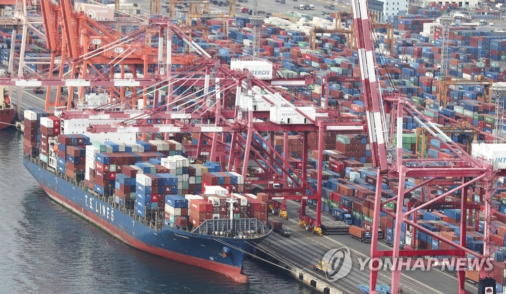 | ▲ Containers are being unloaded at a port in Busan, 325 kilometers south of Seoul, in this file photo taken on Nov. 21, 2022. (Yonhap) |