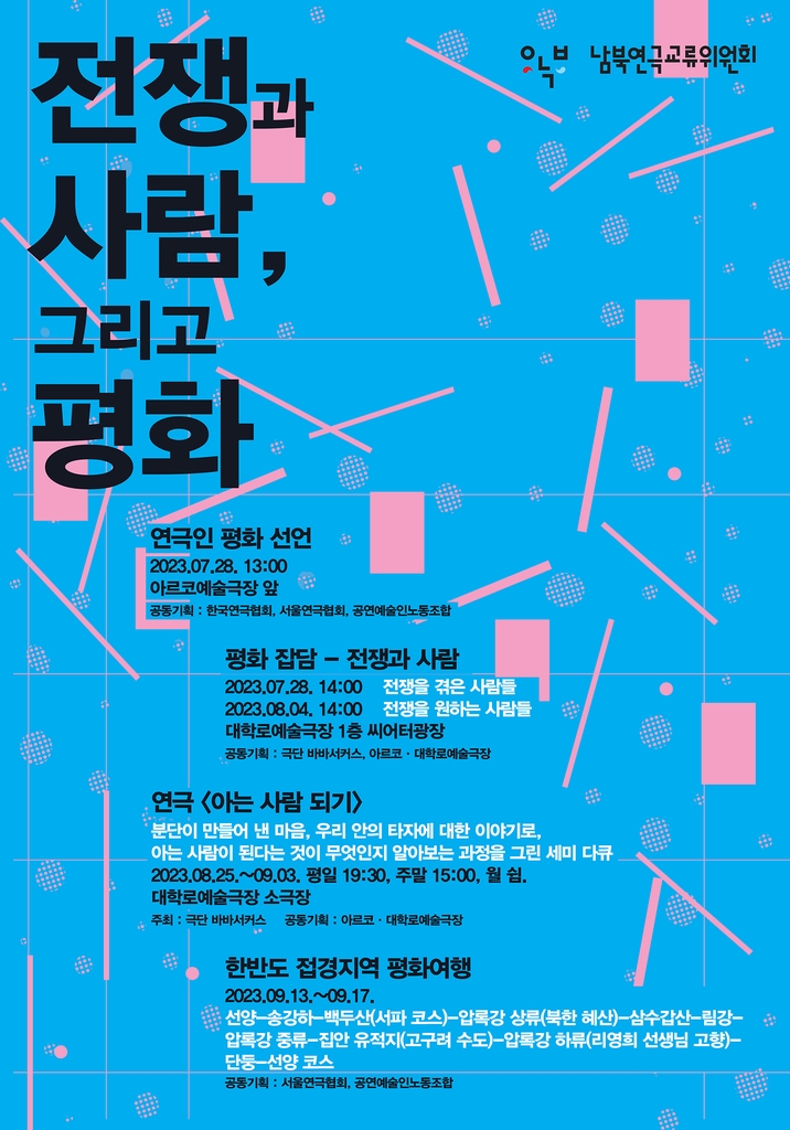 이번 행사는 남북한 정전협정 체결 70주년(27일)을 맞아 열린다. 위원회는 "전쟁 위기로 치닫는 현실을 직시하고 평화를 위해 나서야 할 때"라며 "평화를 소명으로 삼는 연극인들이 나서서 전쟁을 반대하고 평화를 선언한다"고 말했다.