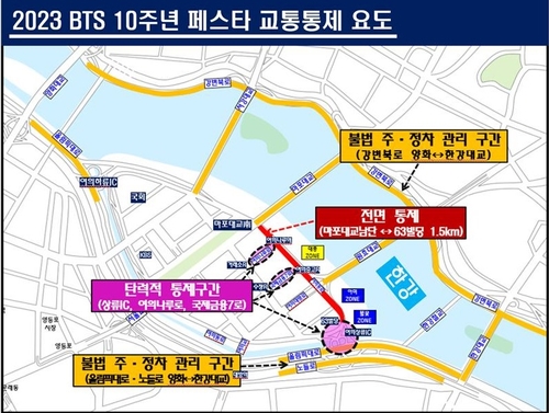 | ▲ 'BTS 10주년 페스타' 교통 통제 지도 [서울경찰청 제공. 재판매 및 DB 금지 |