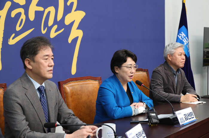 Kim Sun-min (C), acting chief of the minor opposition Rebuilding Korea Party, holds a press conference at the National Assembly on April 6, 2025, over a snap presidential election triggered by former President Yoon Suk Yeol's ouster. (Yonhap)