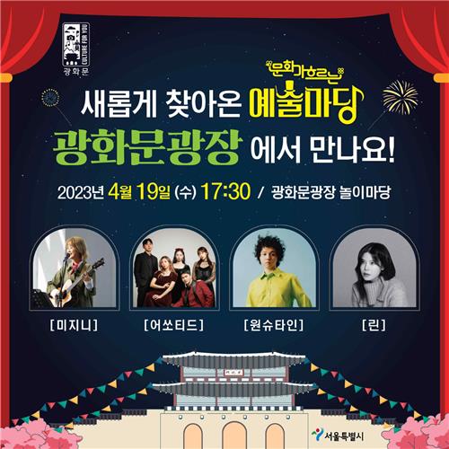 (서울=연합뉴스) 고현실 기자 = 서울시는 19일부터 광화문광장과 노들섬에서 시민을 위한 공연 행사 '문화가 흐르는 예술마당'을 개최한다고 16일 밝혔다.