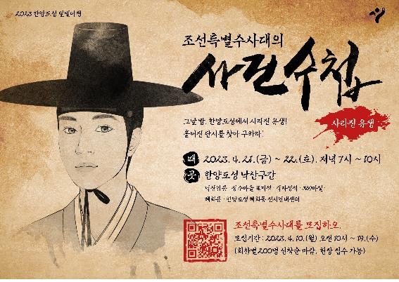 ▲ 서울시는 이달 21∼22일 한양도성 낙산 구간에서 현장 추리게임 '한양도성 달빛야행' 행사를 개최한다. 시민이 조선특별수사대의 수사대원이 돼 사라진 유생을 찾는 추리게임형 관광이다. 행사는 일자별로 1회차 오후 7시, 2회차 오후 8시로 나눠 운영된다. 총 10개 그룹이 3분 간격으로 출발한다. 신청은 이달 10일 오전 10시 서울시 문화본부 공식 블로그(blog.naver.com/seoul_culture) 공지사항에 게시되는 링크를 통해 선착순(800명)으로 받는다. 행사와 관련된 자세한 사항은 행사 운영사무국(☎ 02-458-5230)으로 문의하면 된다. (서울=연합뉴스)