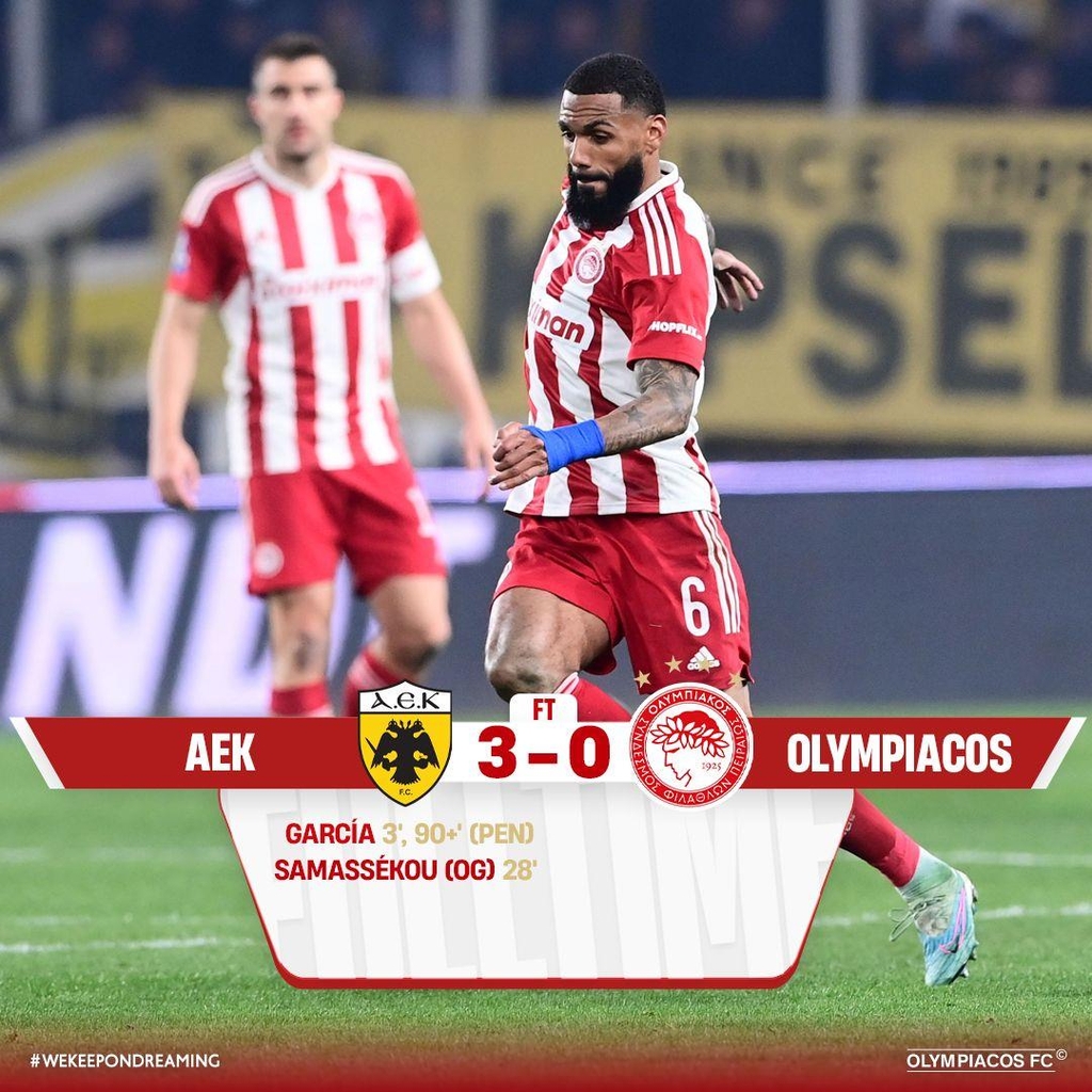 올림피아코스는 10일(이하 한국시간) 그리스 아테네의 OPAP 아레나 스타디움에서 열린 2022-2023시즌 그리스컵 4강 1차전 원정경기에서 AEK 아테네에 0-3으로 완패했다.