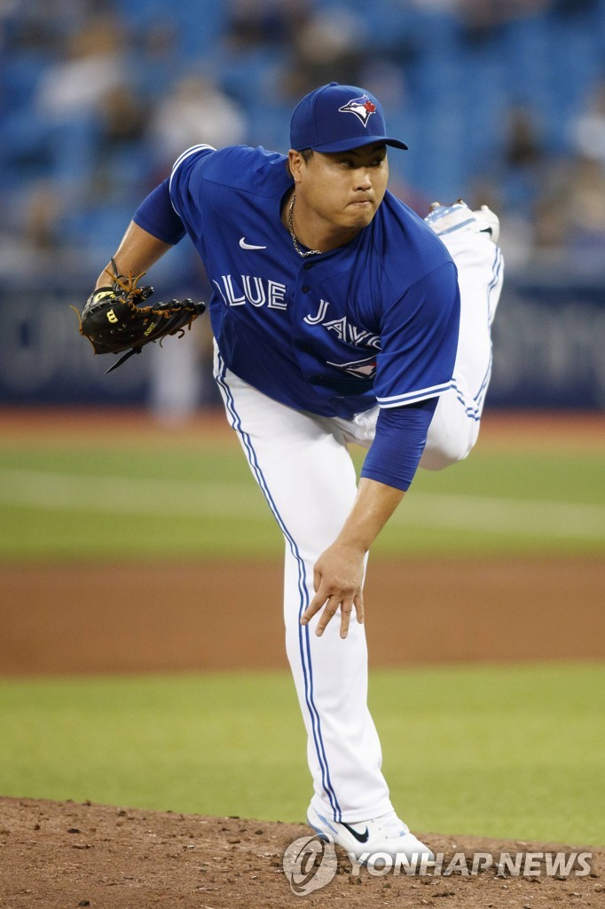 | ▲ In this Getty Images photo, Ryu Hyun-jin of the Toronto Blue Jays pitches against the Minnesota Twins in the top of the second inning of a Major League Baseball regular season game at Rogers Centre in Toronto on Sept. 17, 2021. (Yonhap) |