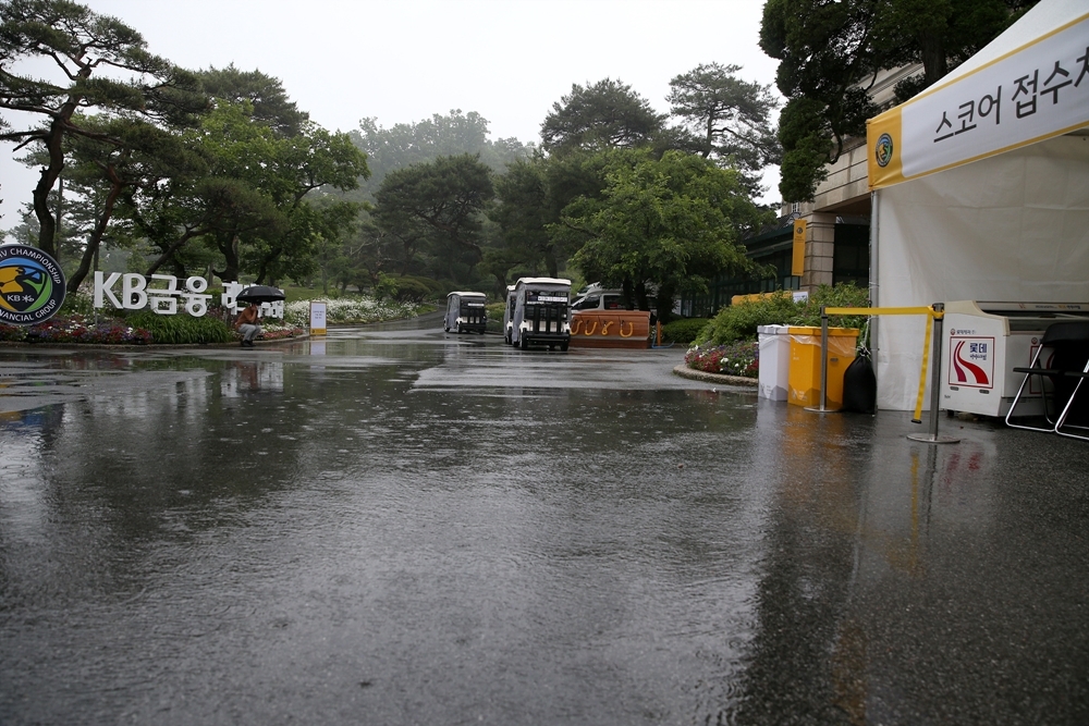 | ▲ 낙뢰를 동반한 폭우가 내리는 블랙스톤 이천 골프클럽. [KPGA 제공] |