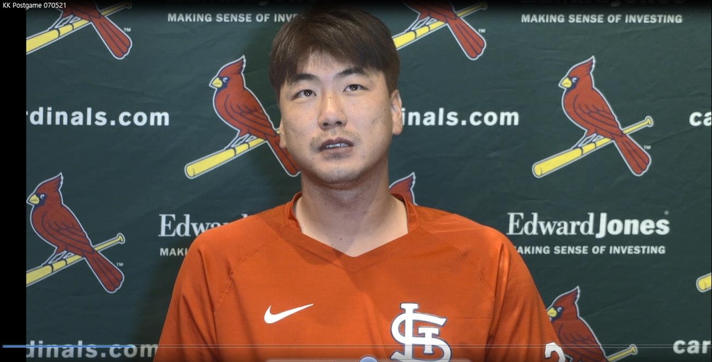 | ▲ 화상 인터뷰하는 김광현 (서울=연합뉴스) 세인트루이스 카디널스 왼손 선발 김광현이 6일(한국시간) 미국 캘리포니아주 샌프란시스코의 오라클 파크에서 열린 메이저리그 샌프란시스코 자이언츠와의 방문 경기에서 시즌 3승째를 따낸 뒤, 화상 인터뷰를 하고 있다. [세인트루이스 카디널스 화상 인터뷰 캡처. 재판매 및 DB금지] |
