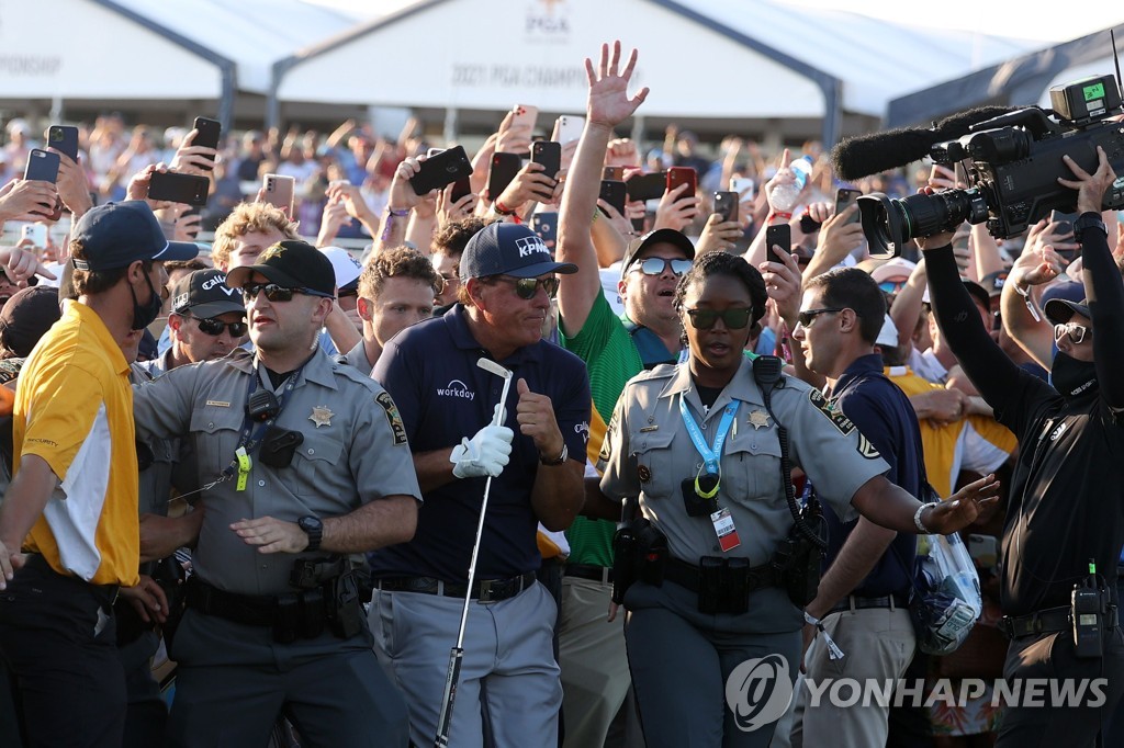 | ▲ 팬들에게 둘러싸인 미컬슨 [AFP=연합뉴스] |