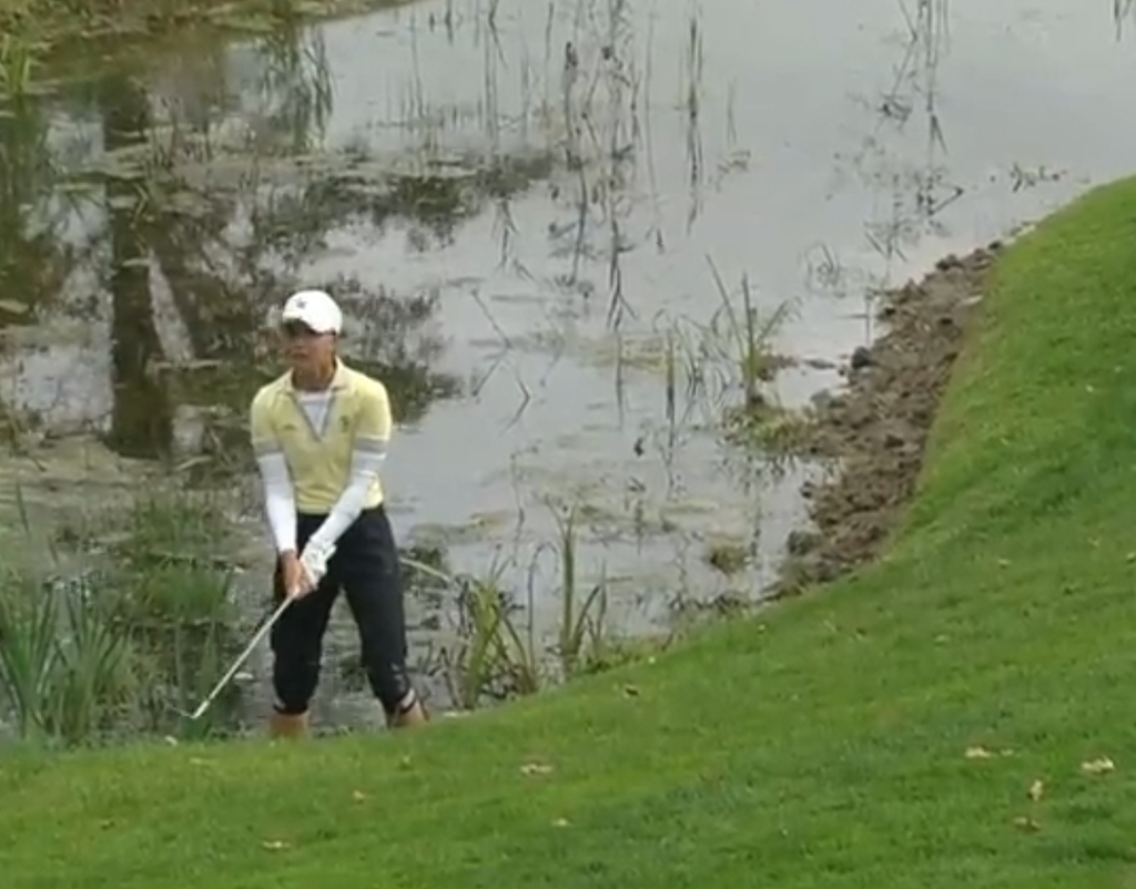 1998년 US여자오픈에서 박세리가 양말을 벗고 물에 들어가 공을 홀에 붙이는 '애국가 단골 장면'과도 비슷한 모습이었다.