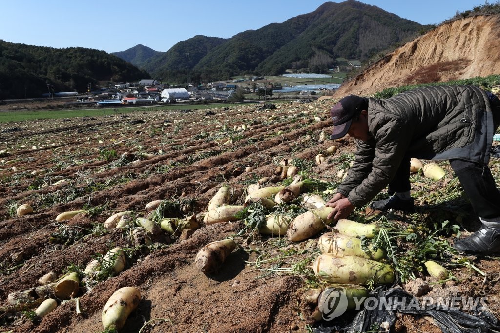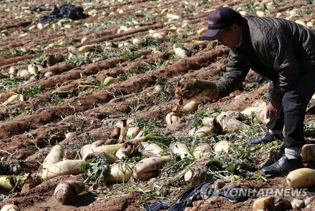 농민 이근학(66)씨는 밭에서 무를 뽑으며 "지금 이렇게 잘 자란 무를 출하하지 못하니 애가 탄다"며 "타산이 맞지 않아 다 내버려야 하는 상황"이라고 말했다.