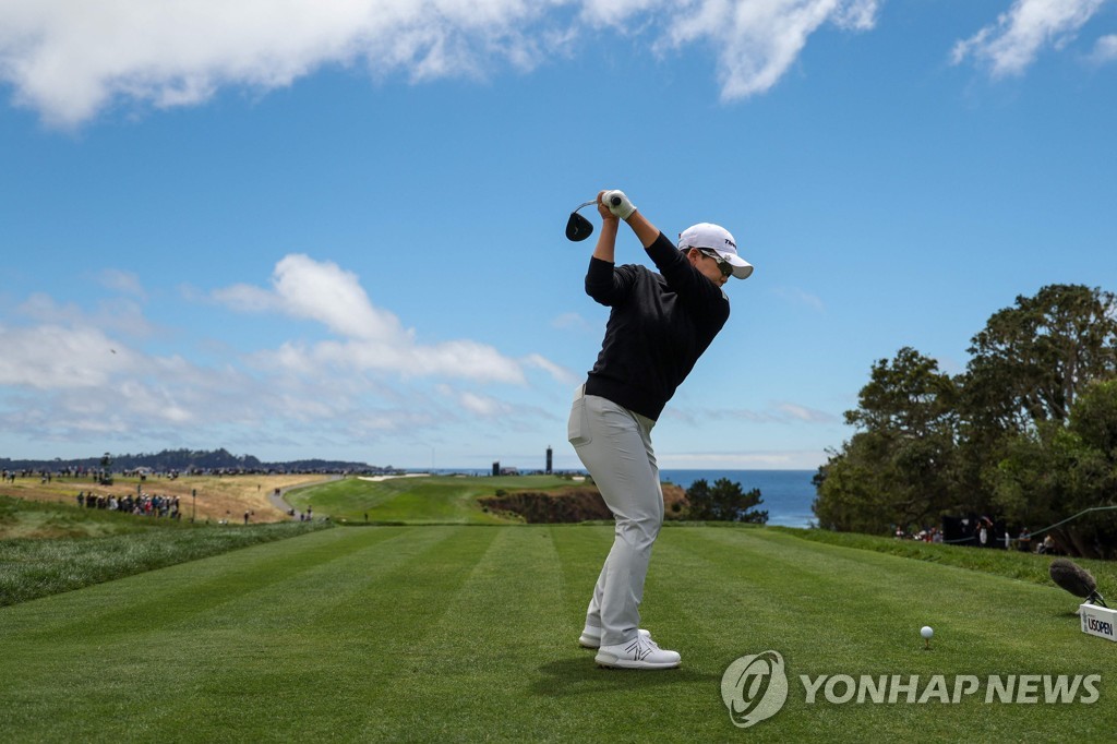 | ▲ In this Associated Press photo, Shin Ji-yai of South Korea tees off on the 10th hole during the final round of the U.S. Women's Open at Pebble Beach Golf Links in Pebble Beach, California, on July 9, 2023. (Yonhap) |