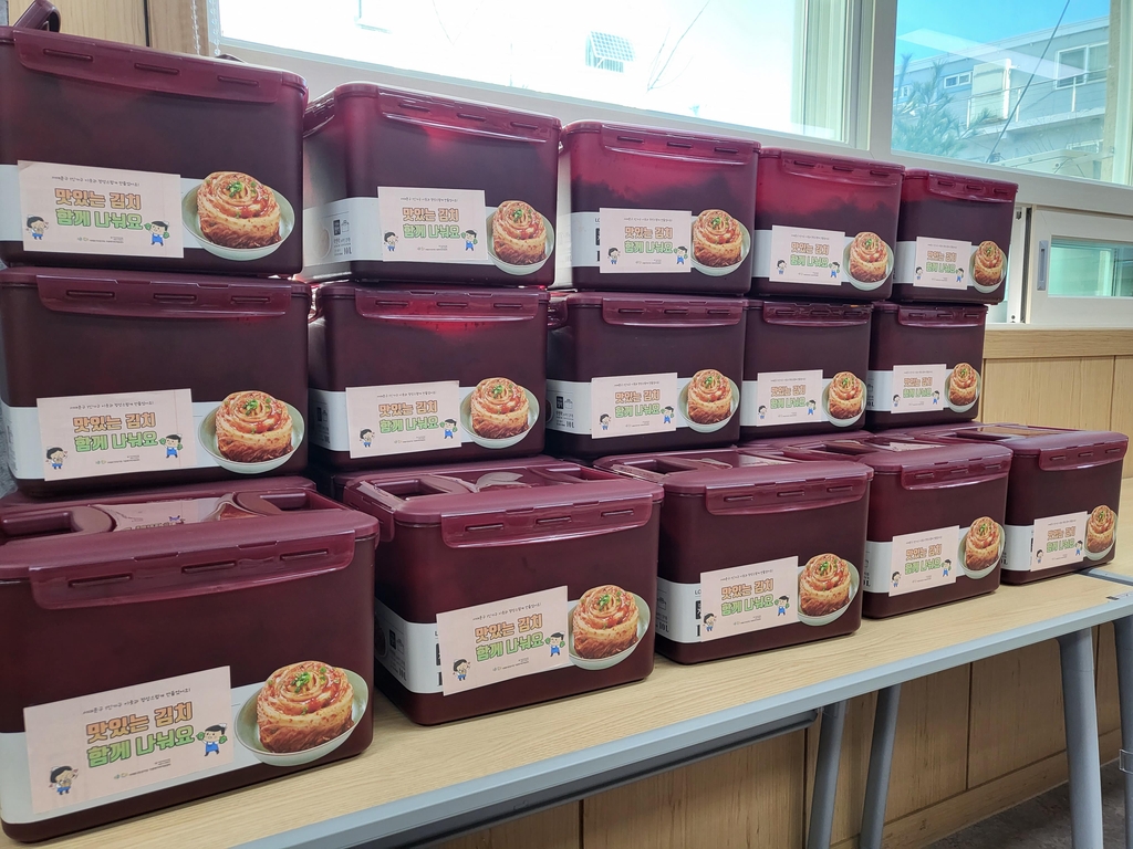 | ▲ This photo provided by the Seodaemun ward office shows boxes of kimchi made by participants in the office's program for single households. Half of the traditional Korean preserves made in the program were donated to needy people. (PHOTO NOT FOR SALE) (Yonhap) |