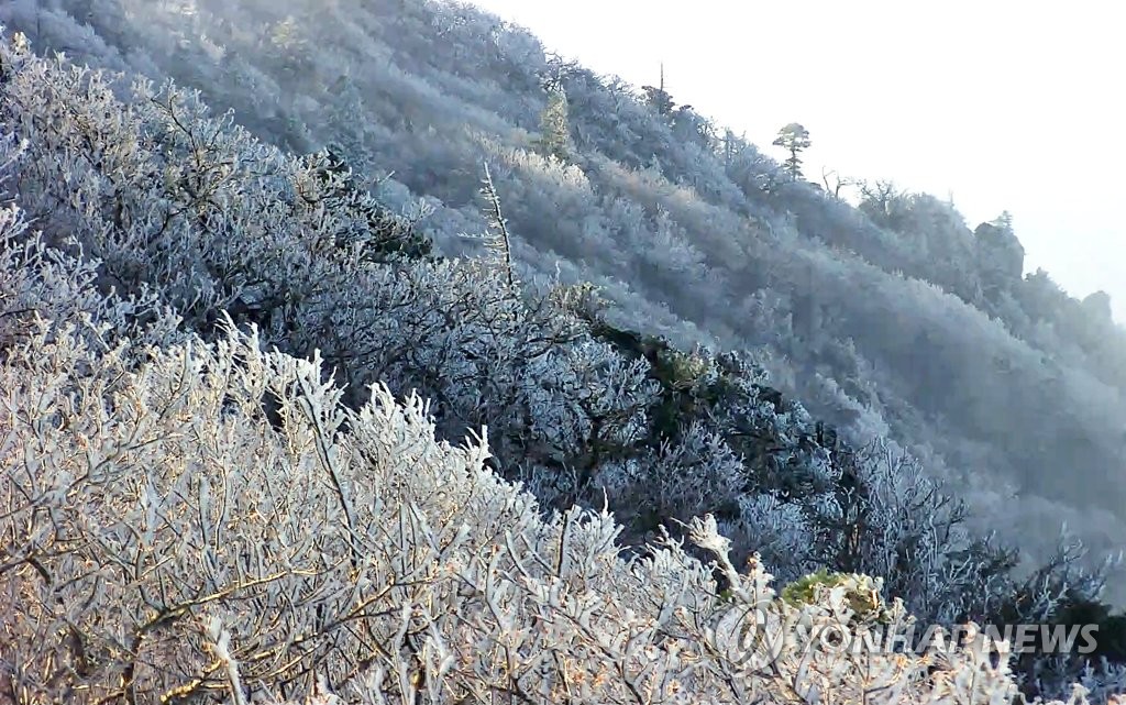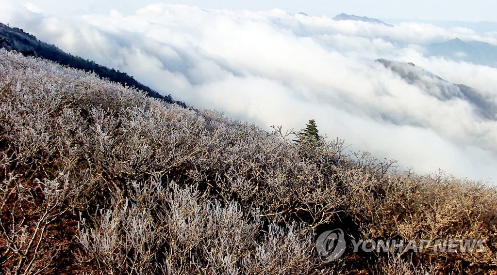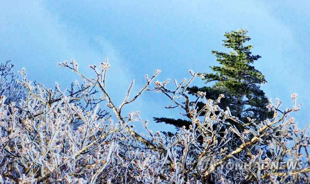 (무주=연합뉴스) 2일 덕유산국립공원 내 설천봉과 향적봉에 상고대가 피어 멋진 풍경을 연출하고 있다.