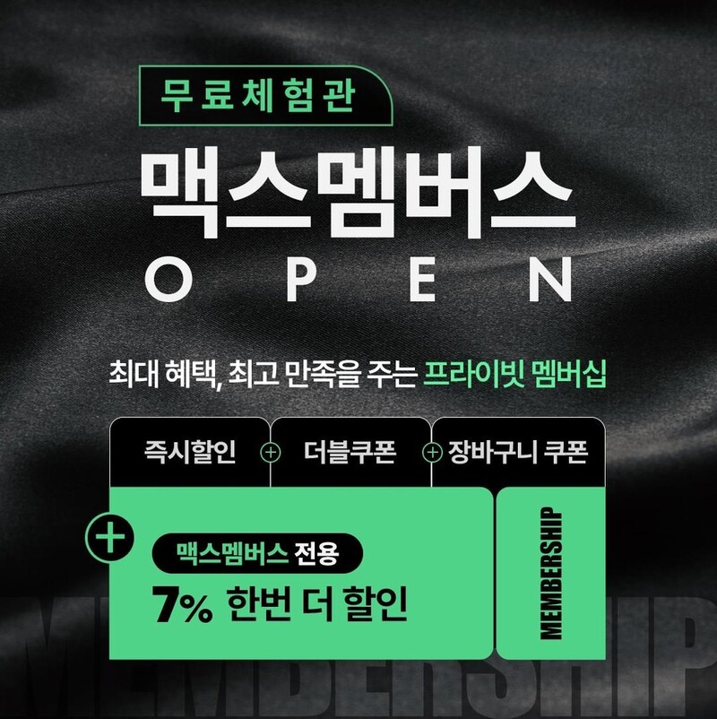 맥스멤버스 구독 고객은 이랜드몰 내 맥스멤버스 전용 상품 구입 시 최종 가격에서 7% 추가 할인을 받을 수 있다.