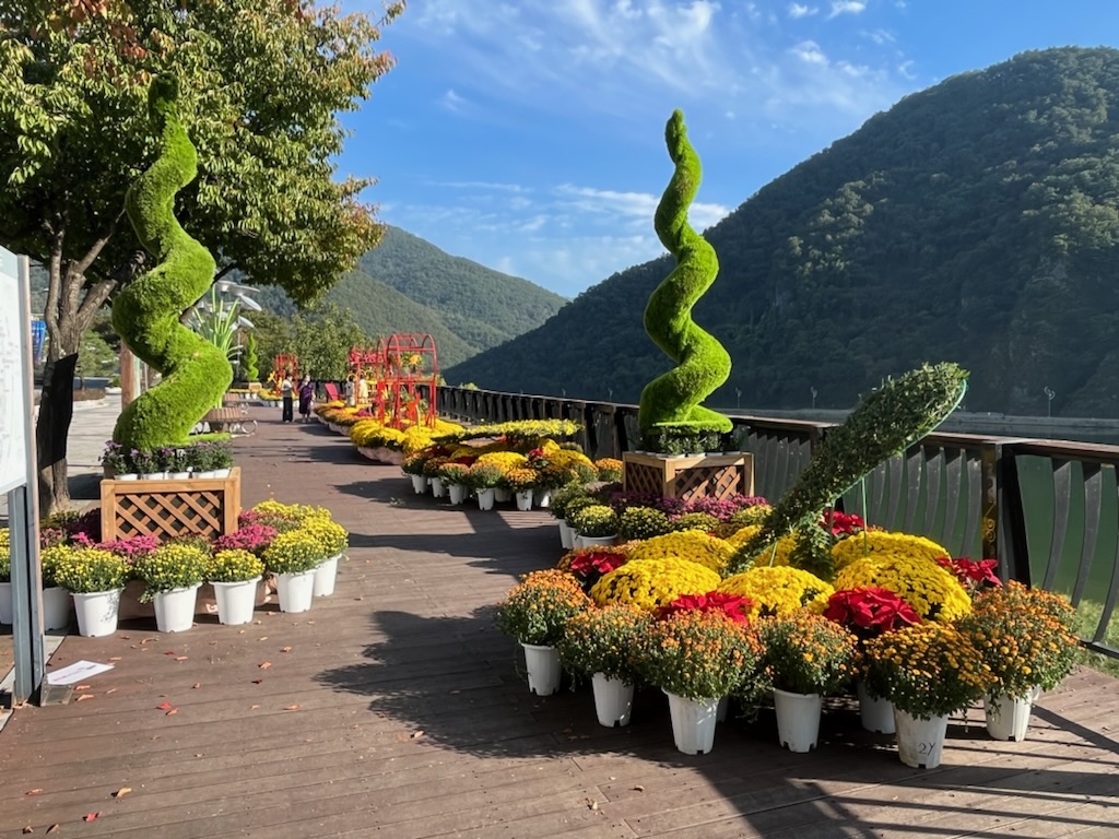 그 주변은 국화 등 8종 8천520그루의 꽃이 가득 채워 사람들의 눈길을 사로잡는다.