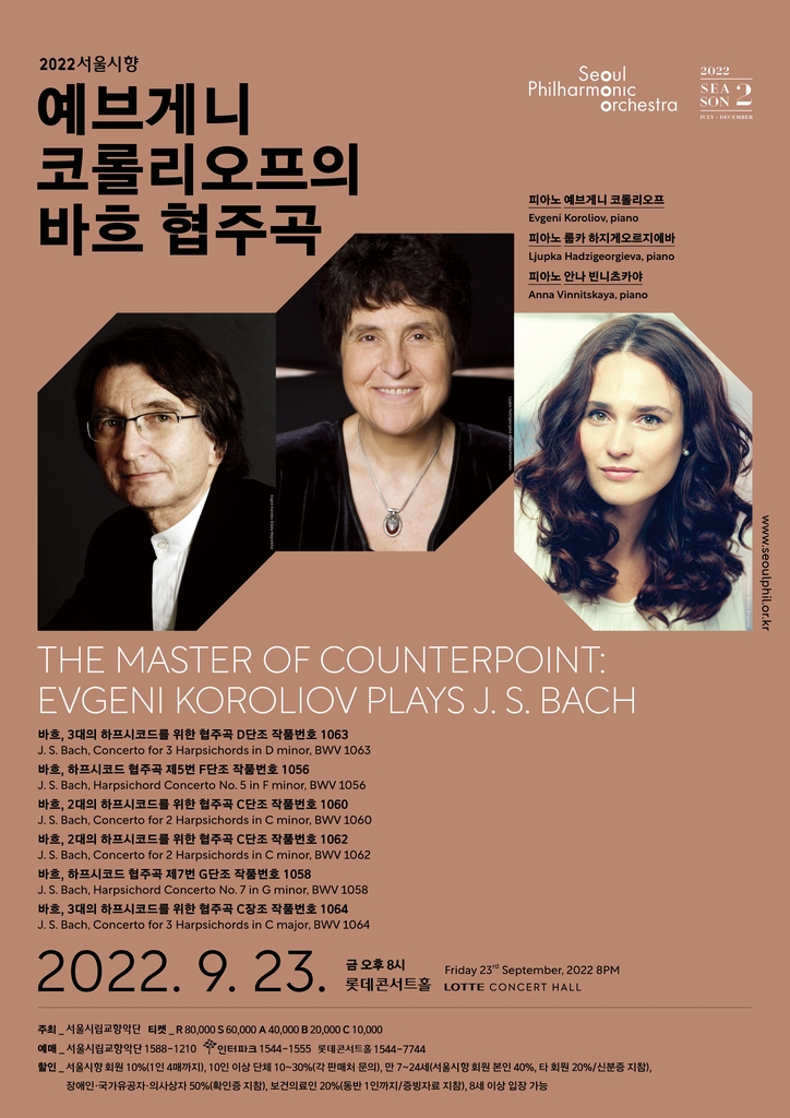 서울시향과는 처음으로 호흡을 맞추는 이번 공연에서 코롤리오프는 바흐의 하프시코드 협주곡 6곡을 피아노 버전으로 연달아 선보일 예정이다.