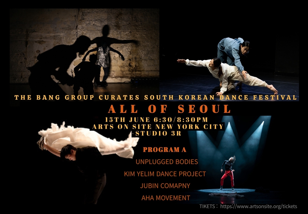비영리 단체 코리아댄스어브로드는 언플러그드바디즈, 양승관 댄스 프로젝트, 주빈 컴퍼니 등 8개 무용단이 다음 달 15∼16일 미국 뉴욕 맨해튼 아츠 온 사이트(Arts on Site)에서 공연 '올 오브 서울(ALL OF SEOUL)'을 연다고 26일 밝혔다.