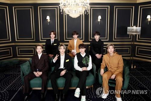 | ▲ This photo, provided by Big Hit Entertainment, shows K-pop superstar BTS attending an online red carpet event for the 2021 Grammy Awards. (PHOTO NOT FOR SALE) (Yonhap) |