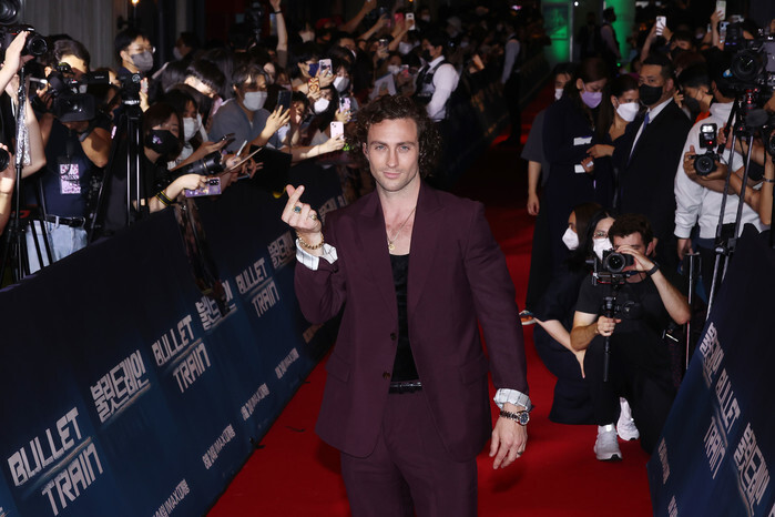 Hollywood actor Aaron Taylor-Johnson poses for a photo during a publicity event for the new movie "Bullet Train" in Seoul on Aug. 19, 2022. The movie will be released in South Korea on Aug. 24. (Yonhap)