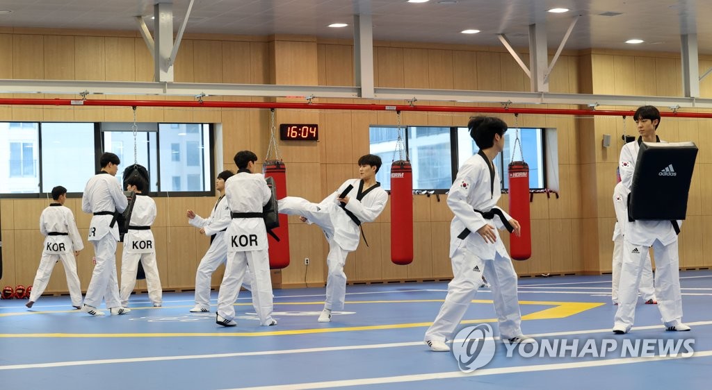 | ▲ South Korean taekwondo practitioners train at the Jincheon National Training Center in Jincheon, 90 kilometers south of Seoul, on April 14, 2021. (Yonhap) |