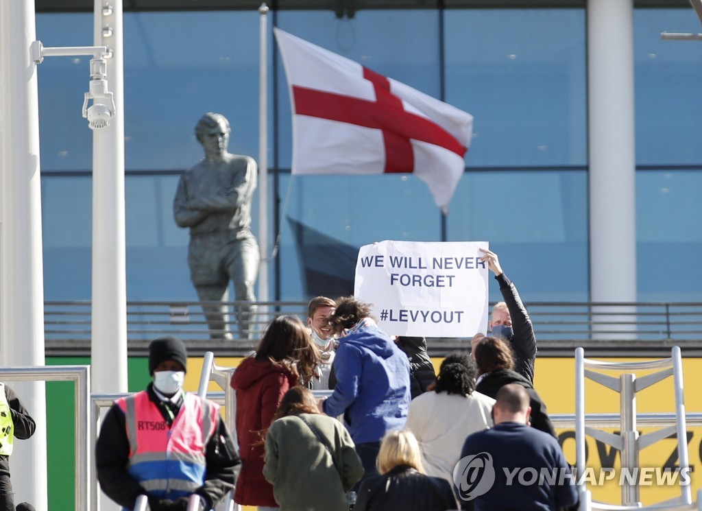 | ▲ This photo shows Tottenham Hotspur fans requesting Chairman Daniel Levy to resign from his position. [Reuters=Yonhap News] |