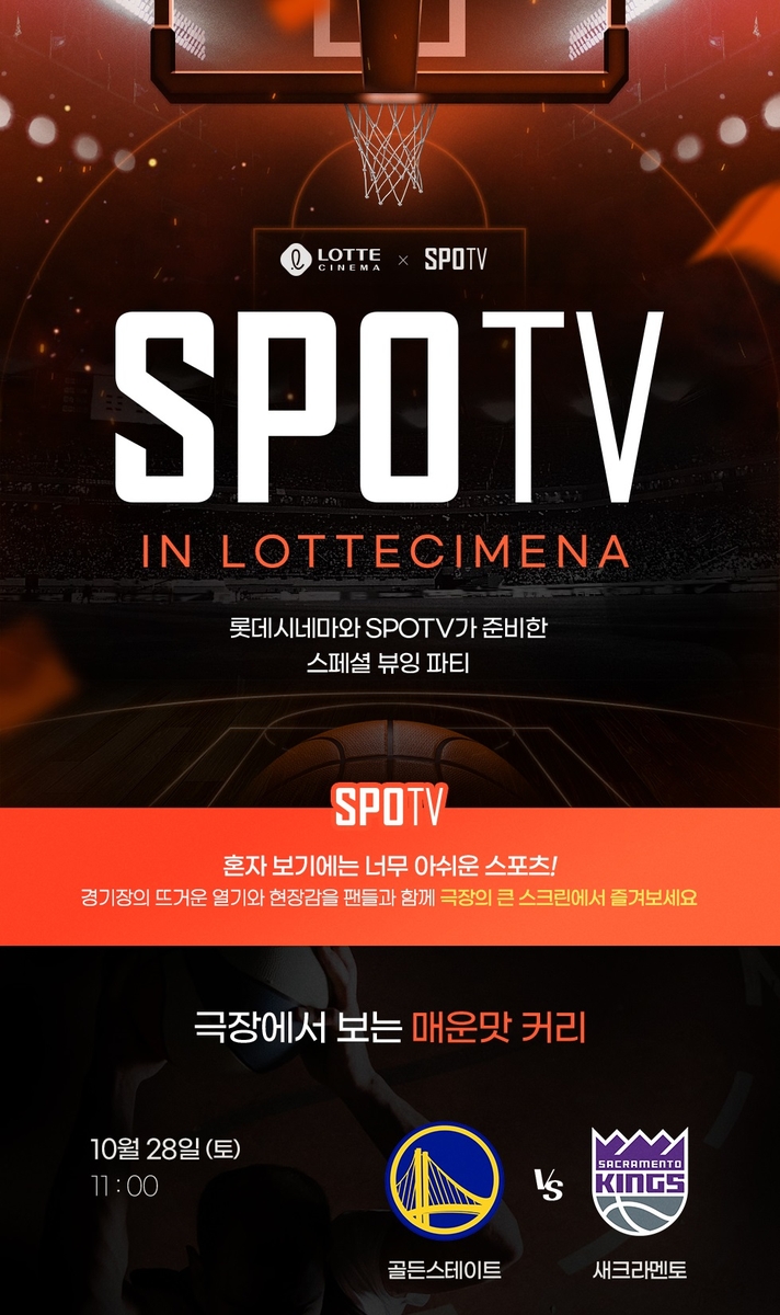 ▲ 영화관서 즐기는 NBA 경기 = 롯데시네마는 오는 28일 미국프로농구(NBA) 골든스테이트 워리어스와 새크라멘토 킹스의 경기를 생중계한다.