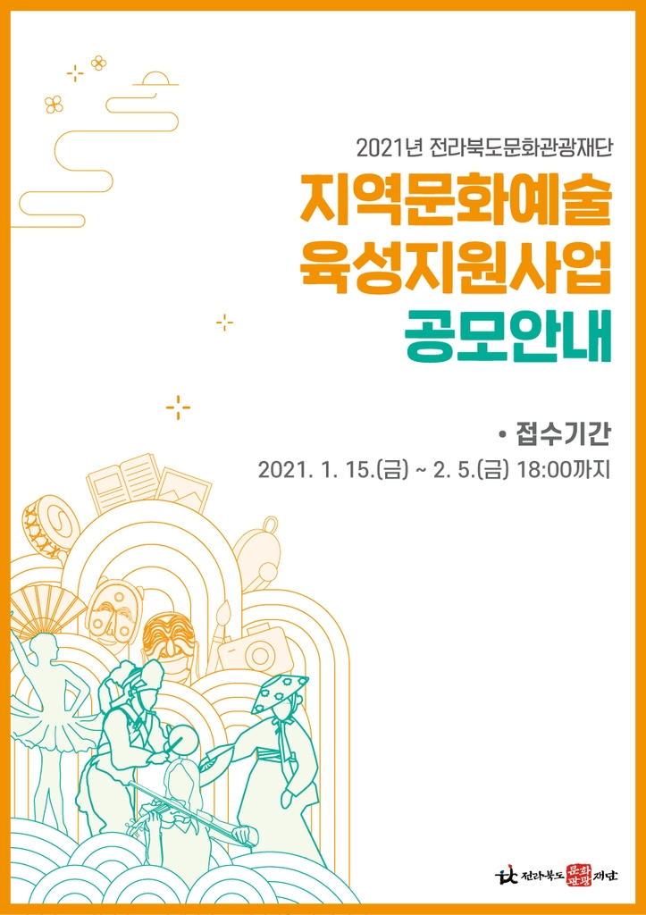 (전주=연합뉴스) 임채두 기자 = 전북문화관광재단은 오는 2월 5일까지 '2021년 지역문화 예술육성지원사업'을 공모한다고 18일 밝혔다.