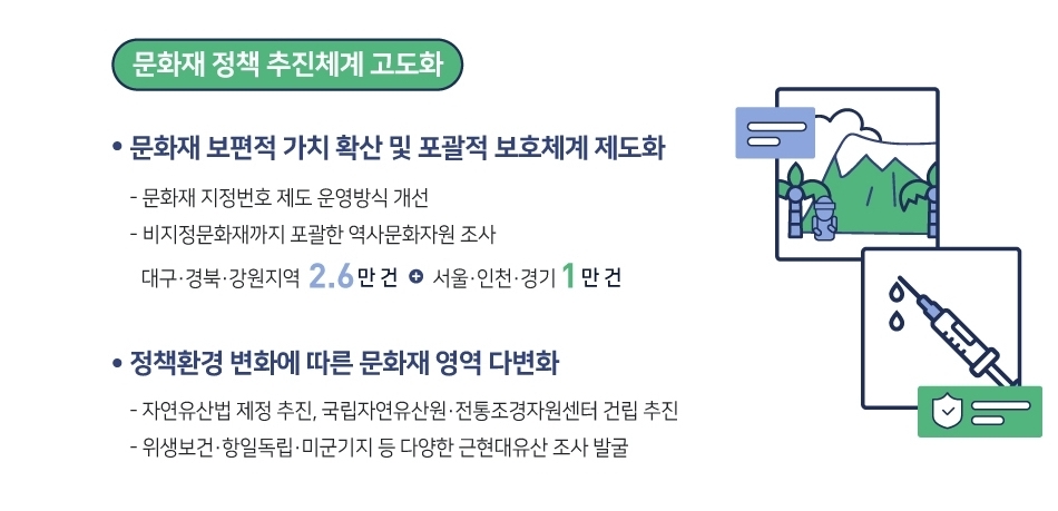 또 국립자연유산원과 전통조경자원센터 건립을 추진하고, 문화재 관리 대상에 비지정문화재를 포함할 방침이다.