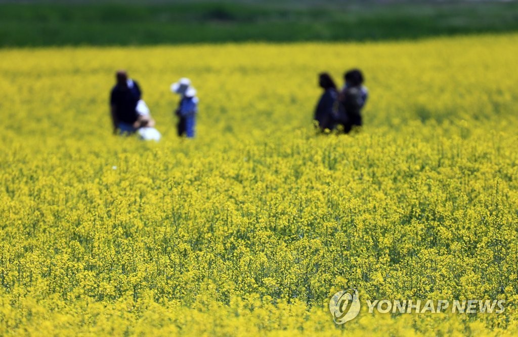 | ▲ 강가에 만발한 유채꽃 (양양=연합뉴스) 이종건 기자 = 맑고 화창한 날씨를 보인 30일 강원 양양 남대천변에 만발한 유채꽃이 나들이 나온 시민들의 눈길을 끌고 있다. 2021.5.30 momo@yna.co.kr |