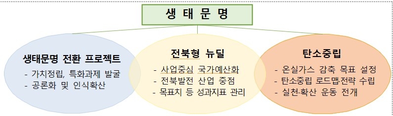 도는 생태 문명을 미래비전으로 제시하고 실행력을 높이기 위해 전북형 뉴딜과 탄소중립 전략을 연계할 방침이다.