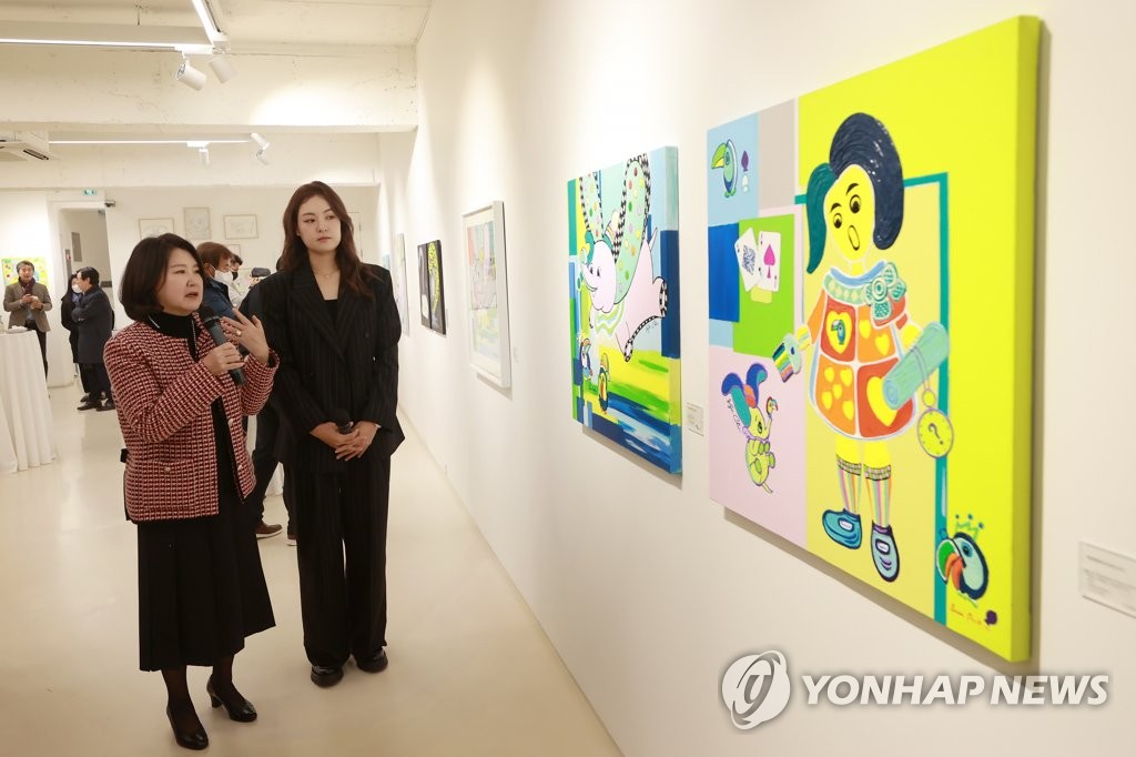 | ▲ South Korean golfer Chun In-gee (R) and painter Park Sun-mi explain their collaborative work during a press conference at Bon Gallery in Seoul on Dec. 15, 2022. (Yonhap) |