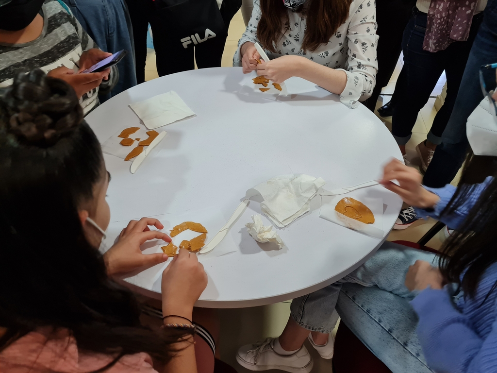 | ▲ 달고나 뽑기 즐기는 멕시코인들 (멕시코시티=연합뉴스) 주멕시코 한국문화원이 9일(현지시간) 마련한 한글날 기념행사에서 참가자들이 순한글 이름 선물을 걸고 달고나 게임을 하고 있다. 2021.10.10. [주멕시코 한국문화원 제공. 재판매 및 DB 금지] mihye@yna.co.kr |