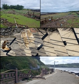 구체적으로 제주사람발자국과 동물발자국 화석산지 보호책이 파손됐으며, 주변으로 다량의 해양 쓰레기가 유입됐다.