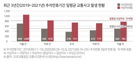 | ▲ 추석 연휴 교통사고 발생 현황 [한국교통안전공단 제공. 재판매 및 DB 금지] |