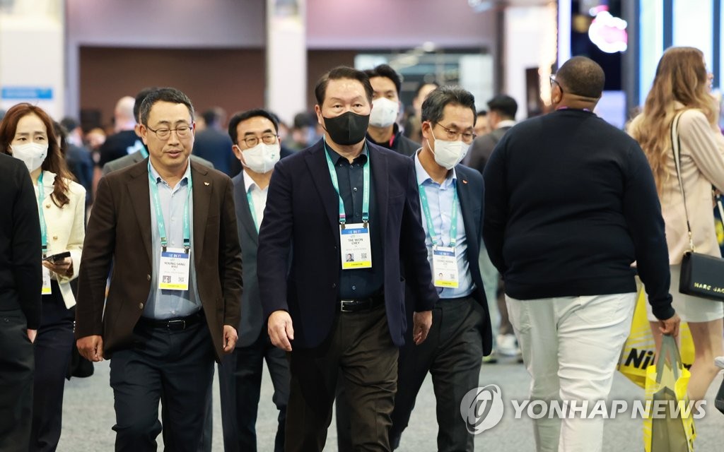 LAS VEGAS, Jan. 6 (Yonhap) -- SK Group Chairman Chey Tae-won appeared at CES on Friday, reversing the earlier announcement that he was canceling his visit to the tech show after one of his aides tested positive for COVID-19.