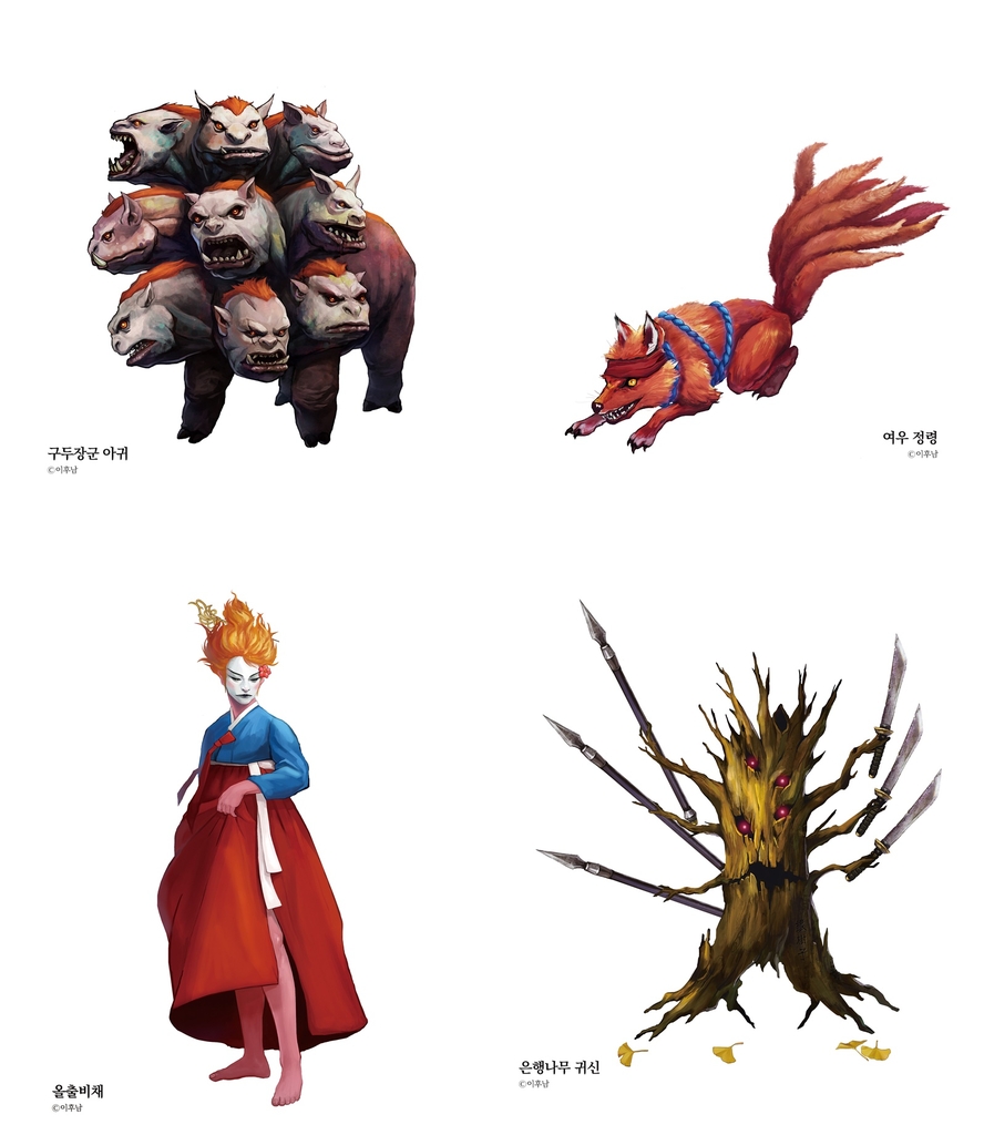| ▲ 한국 고전소설 속 요괴 이미지 왼쪽 상단부터 시계 방향으로 구두장군 아귀, 여우 정령, 올출비채, 은행나무 귀신 [한국학중앙연구원 제공. 재판매 및 DB 금지] |