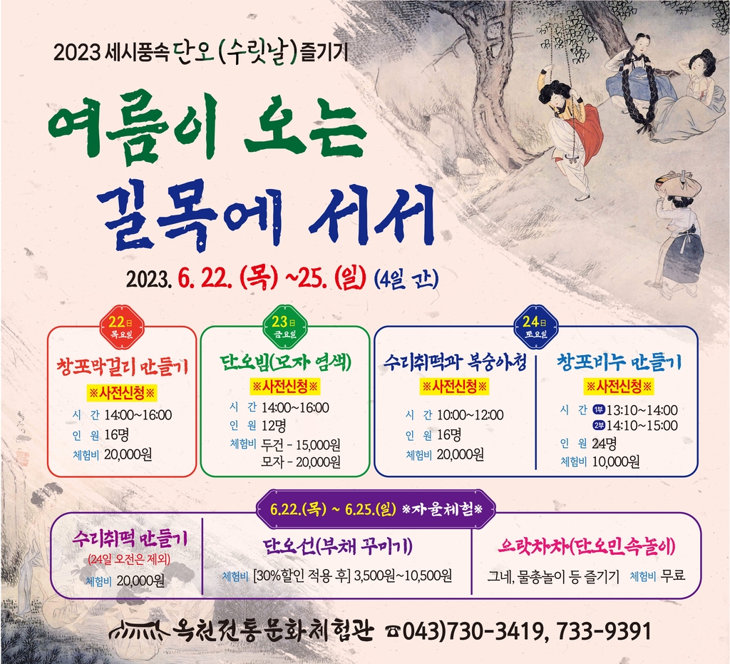 또 단오선 부채 꾸미기, 그네타기·물총놀이 등 단오 민속놀이도 할 수 있다.