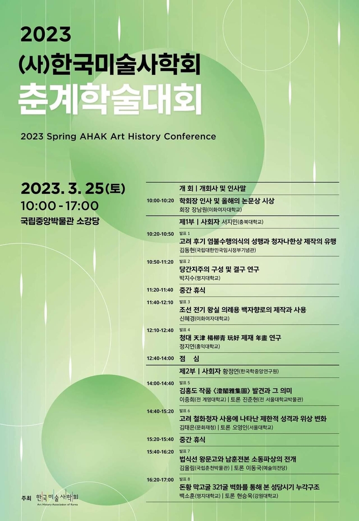 ▲ 한국미술사학회, 25일 춘계 학술대회 = 한국미술사학회는 25일 서울 용산구 국립중앙박물관 소강당에서 미술사 관련 연구 성과를 발표하는 학술대회를 연다.
