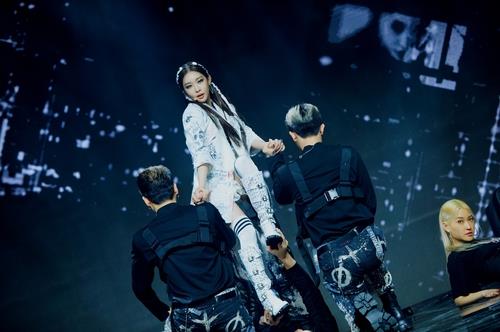 | ▲ This photo, provided by MNH Entertainment, shows K-pop soloist Chungha performing during a press conference held on Feb. 15, 2021. (PHOTO NOT FOR SALE) (Yonhap) |